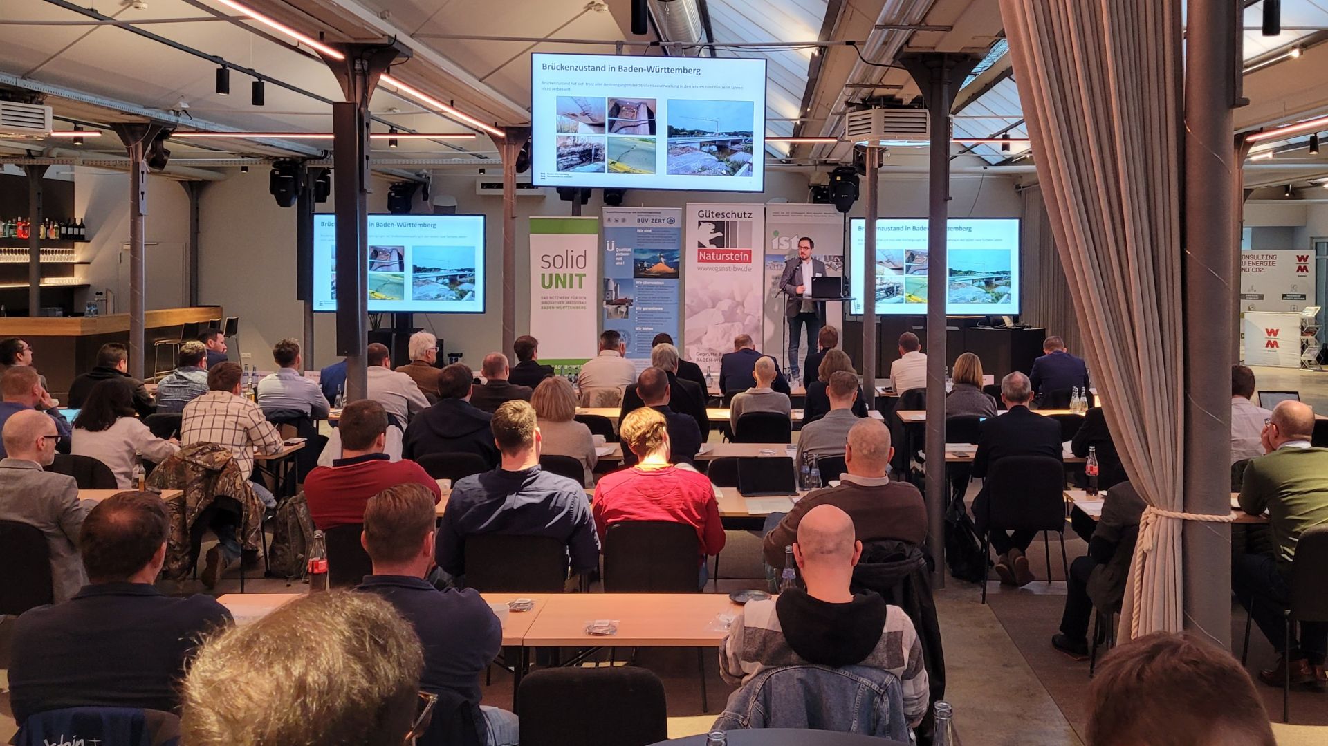 Dr. Tim Weirich aus dem Referat für Erhaltungsmanagement und Ingenieurbau im Landesverkehrsministerium eröffnete den ersten Block mit einem ernüchternden Lagebericht zu dem Zustand der Brücken im Land. Baden-Württemberg verfügt über rund 7.300 Brücken, davon 3.300 Landesstraßenbrücken. Diese seien vor Jahrzehnten unter Annahmen gebaut worden, die den heutigen Belastungen durch den gestiegenen Schwerlastverkehr nicht mehr entsprechen. Diese Überlastung und zum Teil strukturelle Baumängel haben die Substanz erheblich beschädigt. Aktuelle Gutachten rechnen damit, dass in zehn Jahren rund 30 Prozent aller Brücken im Land als eingeschränkt nutzbar eingestuft werden müssen. Um Sperrungen zu vermeiden, seien rund 100 Sanierungen oder Ersatzneubauten pro Jahr notwendig - bis 2036 insgesamt 630 Brücken. Beschleunigen sollen funktionale Ausschreibungen, modulare Bauweisen oder der Einsatz von ultrahochfestem Beton. Der Anteil am Sondervermögen Infrastruktur und Klimaschutz, der für Investitionen in das Landesstraßennetz vorgesehen ist, wird nur begrenzt helfen: „Da bleibt nicht viel übrig, aber es ist besser als nichts“, kommentierte Weirich die 700 Millionen Euro, die dem Land dafür zustehen.